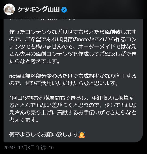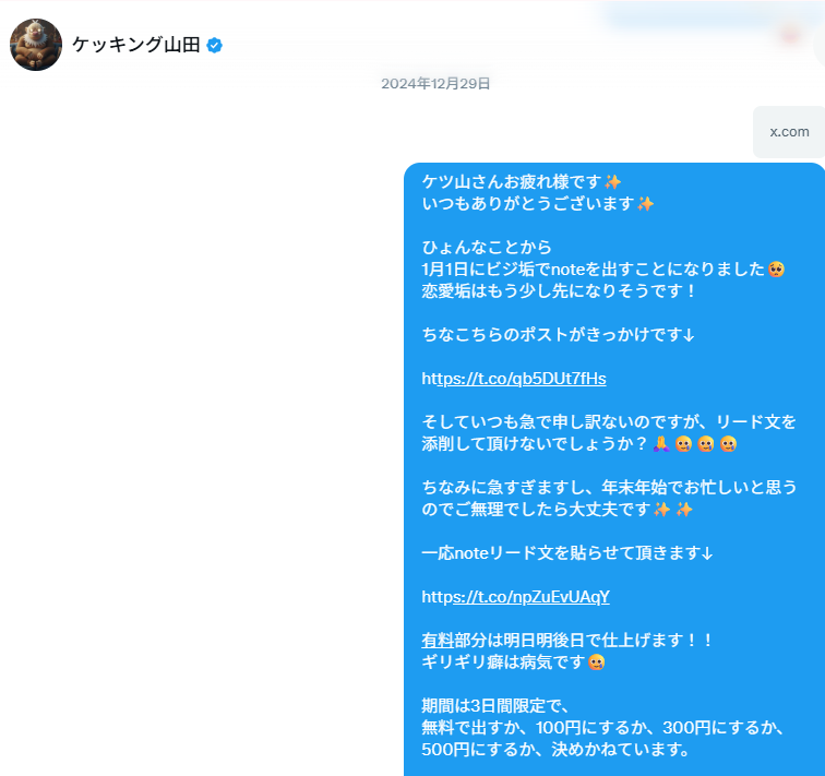 メンター・ケッキング山田と繋がるきっかけになったこのDM