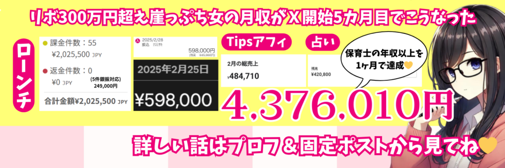今のはなえさんは、コキさんのTipsアフィと占いの2軸運用一本で行くべき。