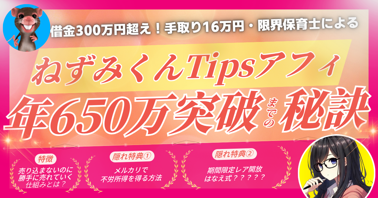 【借金300万円超え・手取り16万円の限界保育士】ねずみくんTipsアフィで年650万までの秘訣